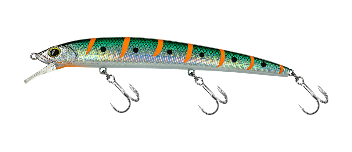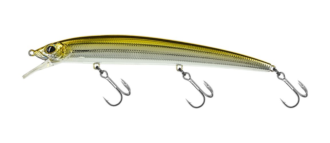 Extremely castable jerkbait with vibrating movements, a real game changer. The in line mobile magnetic cylinder weight with rear and front lock guarantees perfectly balanced long casts and precise retrieves, even at high speeds or in the presence of strong currents. A jerk designed to offer the best performance even in prohibitive conditions like strong headwind or sustained current. Stainless steel thru wire armor, rigged with corrosion free treatment high quality treble hooks. It is suitable for use in any situation both in fresh and saltwater with various types of predators such as largemouth bass, asp, marble trout, sea bass and bluefish.